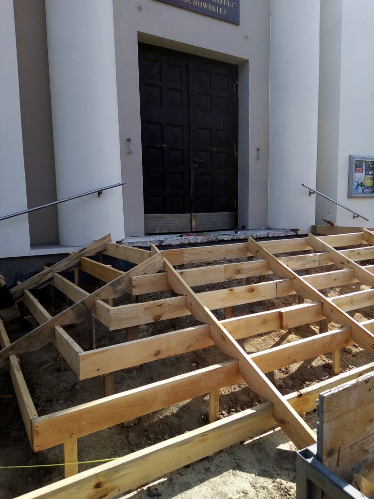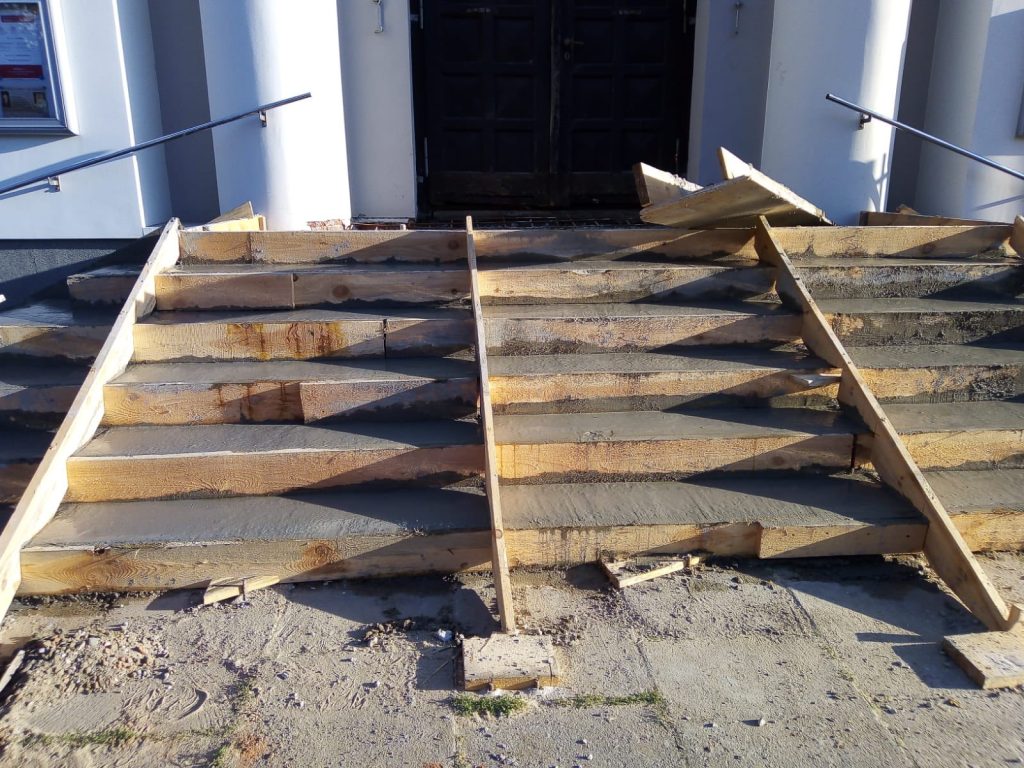 1. Zakończył się pierwszy etap remontu schodów. Betonowa konstrukcja zostanie następnie wyłożona płytami z granitu. Ostatnim etapem będzie zbudowanie pochylni dla osób na wózkach. Dziękujemy za wszelkie ofiary złożone na ten cel. W tym tygodniu złożono łącznie 4150 zł.