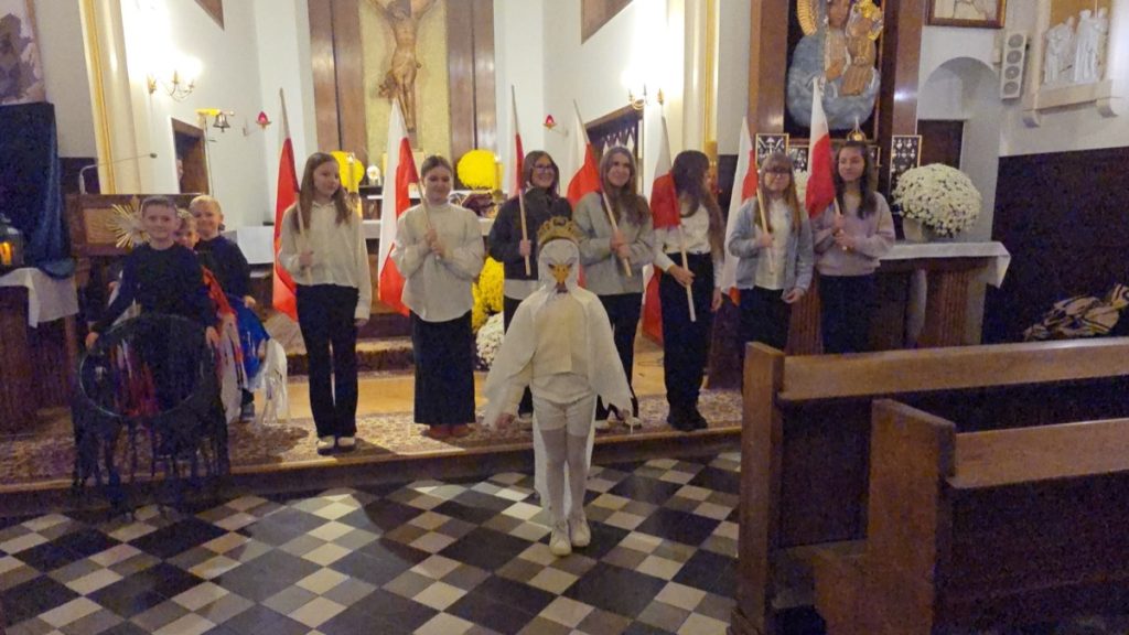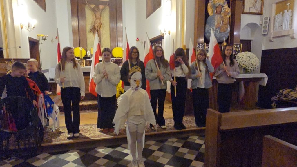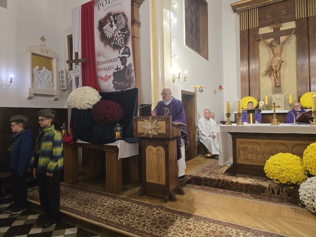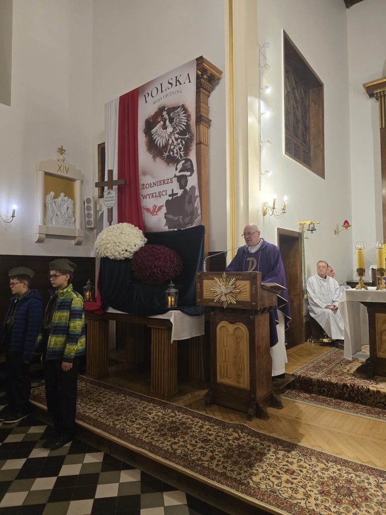 Po filmie przeszliśmy do naszego Kościołą, gdzie odprawiona została Msza Święta w intencji Żołnierzy Wyklętych, a słowo wygłosił Ks. dr hab. Mieczysław Różański.
