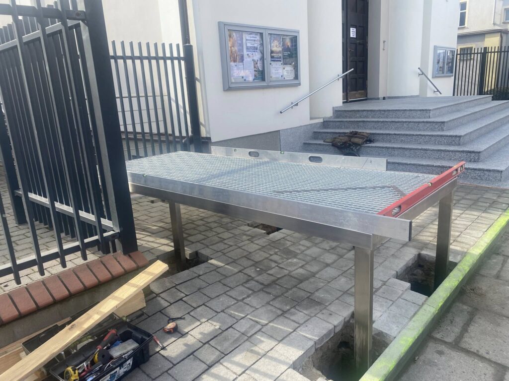 9. Dziękujemy za wszelkie ofiary i wpłaty na konto parafii. W tym tygodniu rozpoczął się montaż podjazdu do kościoła, ale nie jest to jedyna inwestycja, gdyż całkowicie zepsuł się projektor i trzeba będzie zakupić nowy.
